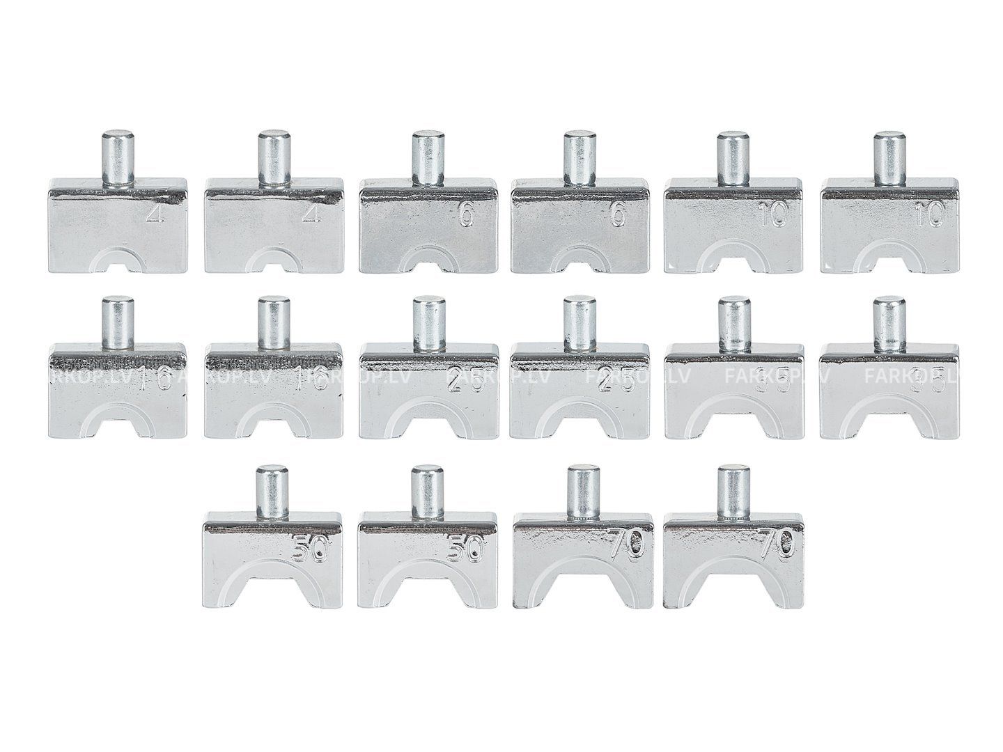- Replaceable dies: 14, adapted for various wire diameters (4, 6, 10, 16, 25, 35, 50, 70 mm²). - Convenient carrying case: practical storage and easy transport of tools and accessories.