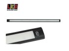 Interior light LED, 12V, 770mm, black. Sensor on/off button, low profile 11mm, opaque lens, cool white light 6500K, CRI80, 1400/800lm, 1.4A. Black aluminum housing, durable polycarbonate lens, ABS ends. No ECE approval. For interior or off-road use only.