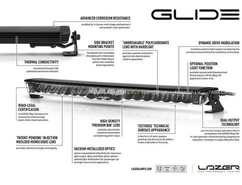 The Glide range of low-profile formed light bars, like all Lazer LED lighting solutions, are designed and manufactured against unparalleled standards and packed full of advanced and innovative features to maximise performance and longevity. With Glide you can be fully assured of exceptional high-end product design, coupled with superior levels of illumination, all backed by our comprehensive 5-year warranty.