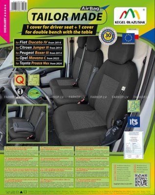 Seat covers TAILOR MADE, 1 cover for driver seat + 1 cover for double bench with the table