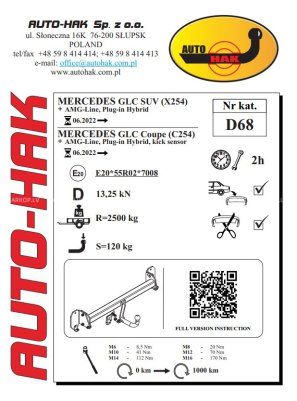 Tow bar with screw fixation. Tow bar constructed accordingly all European and car producer standards. Installs accordingly car producer mounting places. Kit contains all necessary parts for installation.