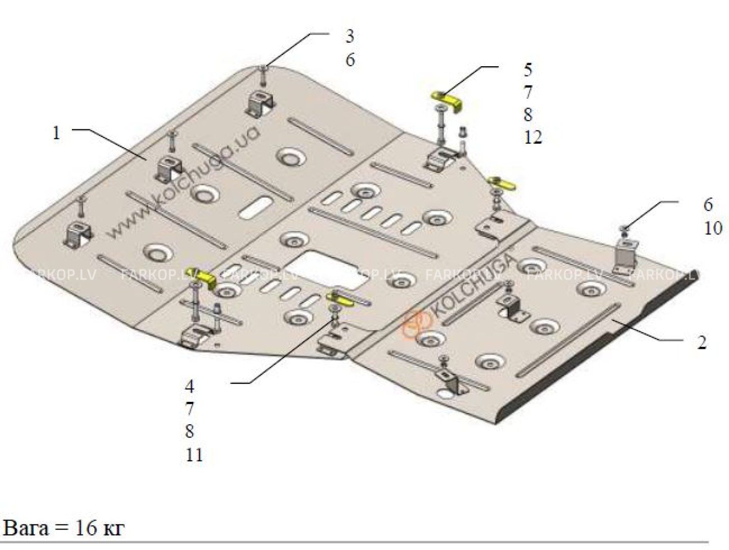 The protection has a unique shape that follows the shape of the underside of each car model, taking into account all its features and equipment. It is installed in the places provided by the car manufacturer, without additional drilling or welding, due to which the installation process is as simple as possible.
