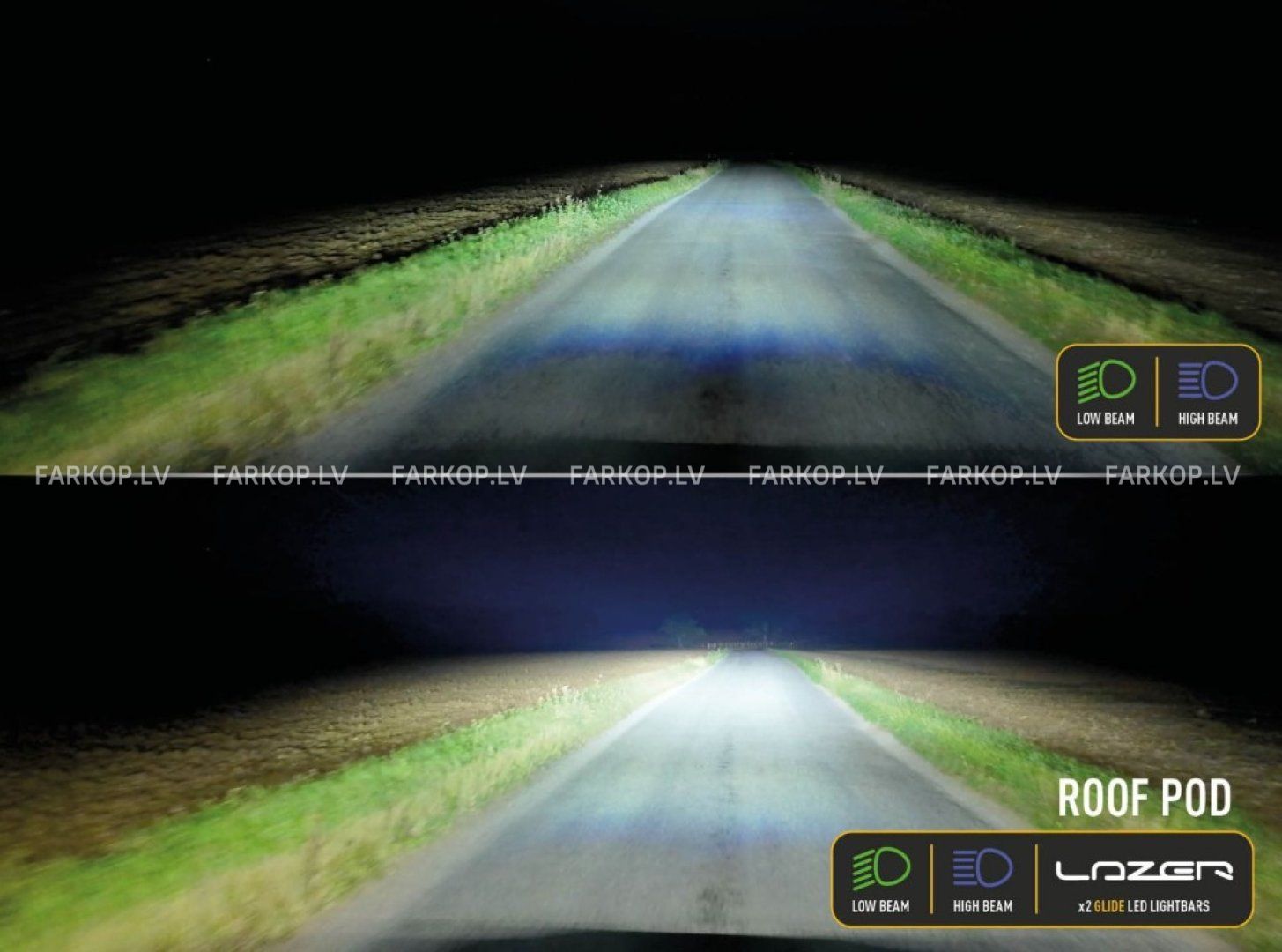 Speciāli izstrādāts jaunajam VW Amarok2023- (MY23+), Lazer Roof Pod nodrošina OE kvalitātes apgaismojuma uzlabojumu ar izcilu veiktspēju un nevainojamu integrāciju. Korpuss paredzēts 2x Glide augstas veiktspējas LED lukturiem, kas nodrošina iespaidīgu 23 000 lūmenu gaismas plūsmu, pilnībā mainot redzamību naktī gan uz ceļa, gan ārpus tā.