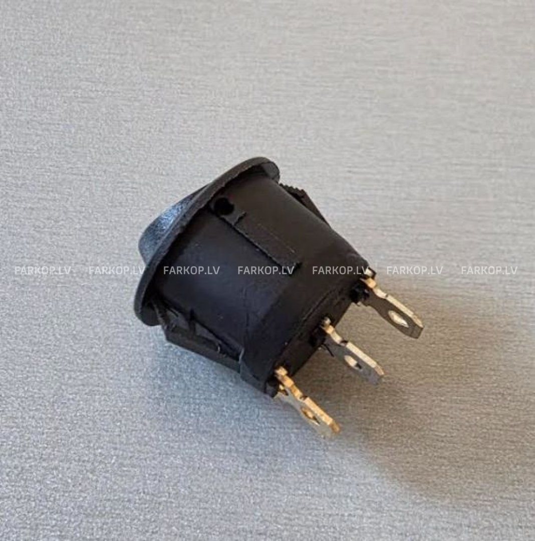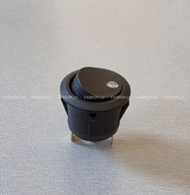 Rocker switch(Rocker tipa slēdzis) , IESLĒGTS-IZSLĒGTS, fiksējošs, 3 kontaktu. 6A / 250Vac, Ø19.8mm, SPST, apaļš, melns, balts apgaismojums 12V