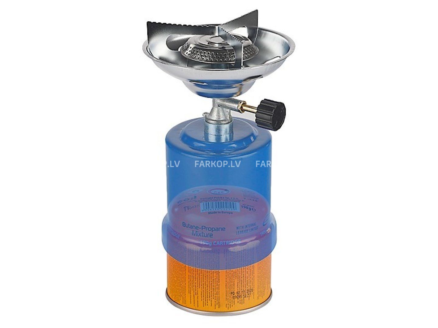 Viendegļa gāzes plīts ar 220 mm diametru un pjezoelektrisko aizdedzi un liesmas regulēšanu. Ideāli piemērota pārgājieniem, kempingiem un profesionāliem autovadītājiem.