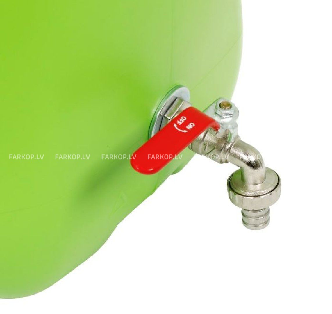 Aprīkota ar krānu ar šļūtenes savienojumu. Tai ir arī metāla krāns, kas ļauj ātri un vienkārši uzpildīt citas tvertnes. Turklāt var viegli pievienot dārza šļūteni.