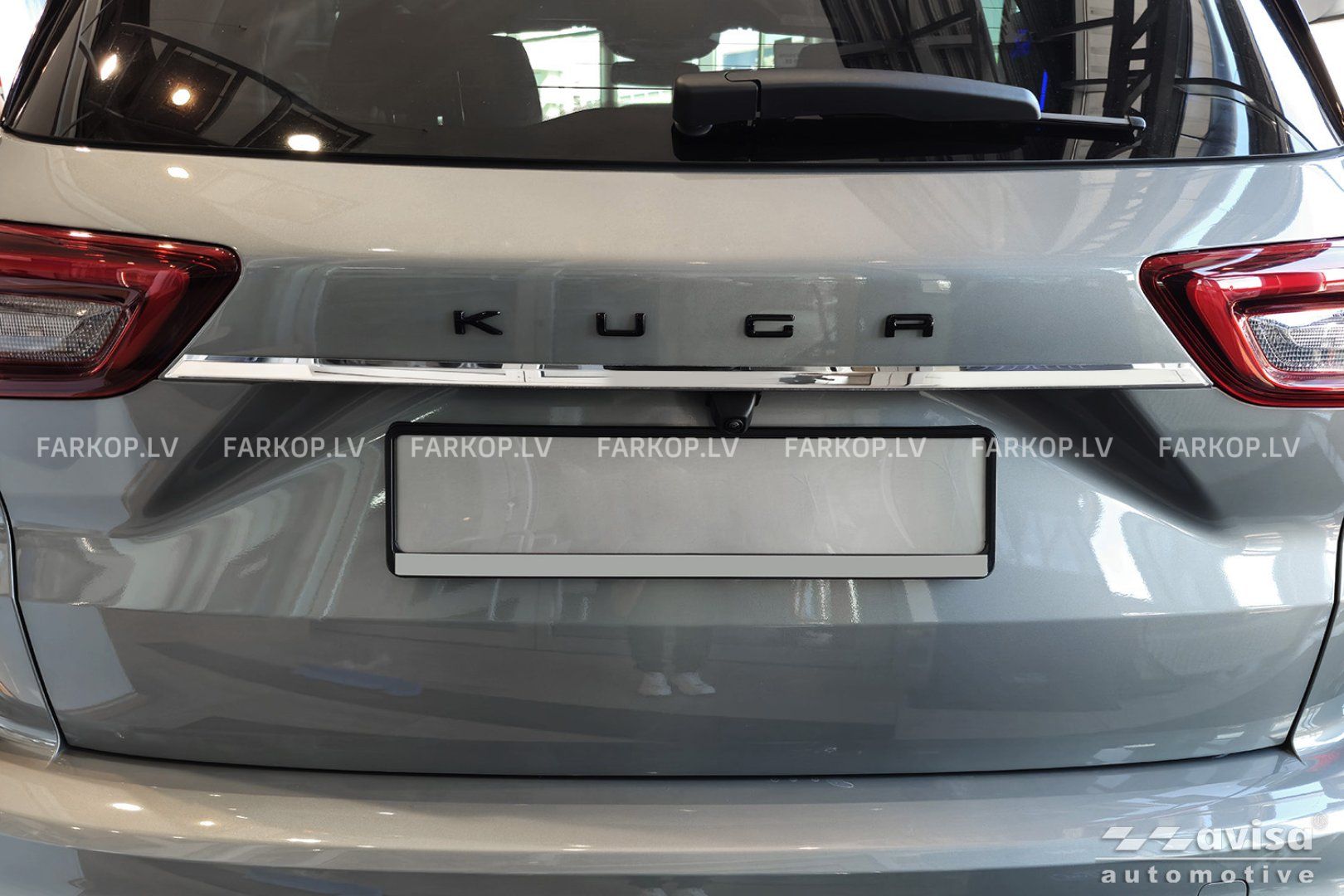 Nerūsējošā tērauda bagāžnieka durvju līste ir izstrādāta Ford KUGA III 2019-2024, FL 2024- modelim un paredzēta montāžai virs numura zīmes. Tā piešķir numura zonas apdarei pabeigtu un elegantu izskatu, vienlaikus aizsargājot virsmu no skrāpējumiem un mehāniskiem bojājumiem ikdienas lietošanā. 0,5 mm tērauds, precīza forma un izturīga 3M līmlente ļauj uzstādīt līsti ātri un bez urbšanas. Sudraba spoguļa apdare piešķir spilgtu, greznu un klasisku vizuālo efektu.