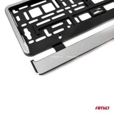 Augstas kvalitātes numura zīmes rāmis, kas izgatavots no laikapstākļiem, skrāpējumiem un citiem bojājumiem izturīga materiāla.