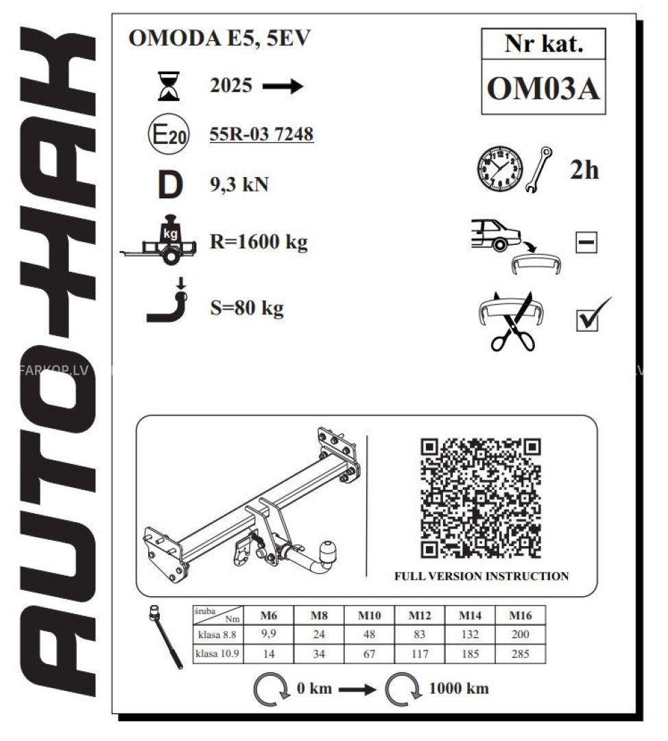 SVARĪGI !!! Sakabes āķa komplekts nesatur elektroinstalāciju.