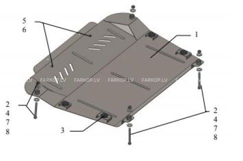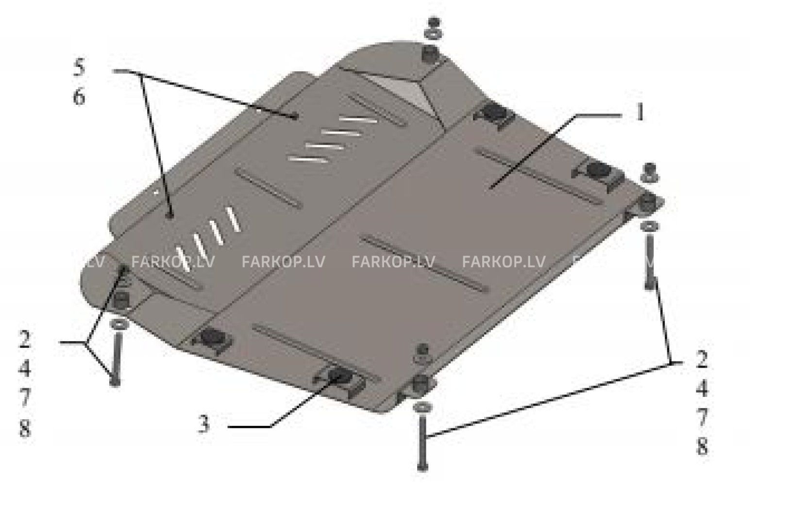 Dzinēja un ātrumkārbas aizsargs, metāls 2,0 mm.