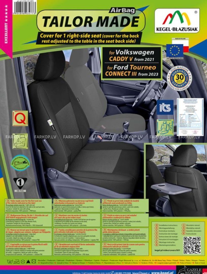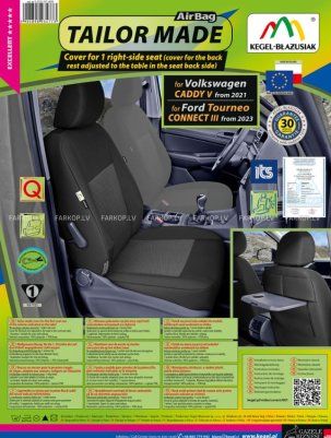Priekšējais pasažiera sēdekļa pārvalks(labā puse 1-sēdvieta) Tailor Made versija ar galdiņu aizmugurē priekš VW Caddy V 2021- / Ford Tourneo Connect III 2023-