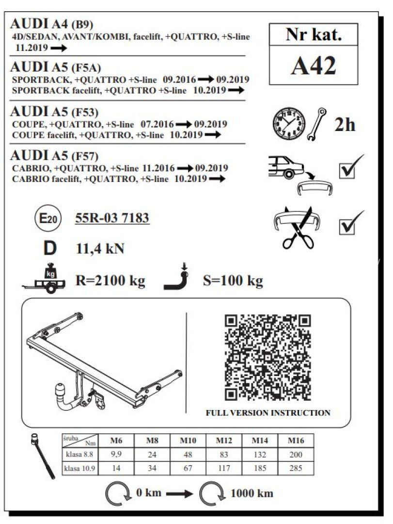 Sakabes āķis, ar skrūvējamo galu. Sakabes āķa konstrukcija ir izstrādāta un atbilst auto ražotāja un Eiropas standartiem. Uzstādās uz rūpnīcas paredzētiem montāžas punktiem. Komplekts satur visus nepieciešamos elementus sakabes āķa uzstādīšanai.