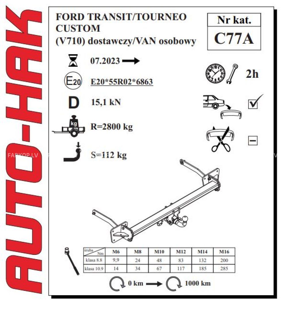 SVARĪGI !!! Sakabes āķa komplekts nesatur elektroinstalāciju.