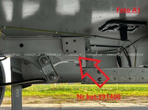 - sakabes āķis ir paredzēts modeļiem ar maksimālo pārkari no aizmugurējā riteņa centra līdz bufera malai 2430 mm.