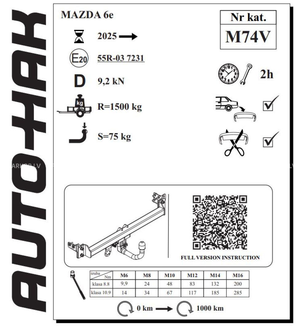 SVARĪGI !!! Sakabes āķa komplekts nesatur elektroinstalāciju.