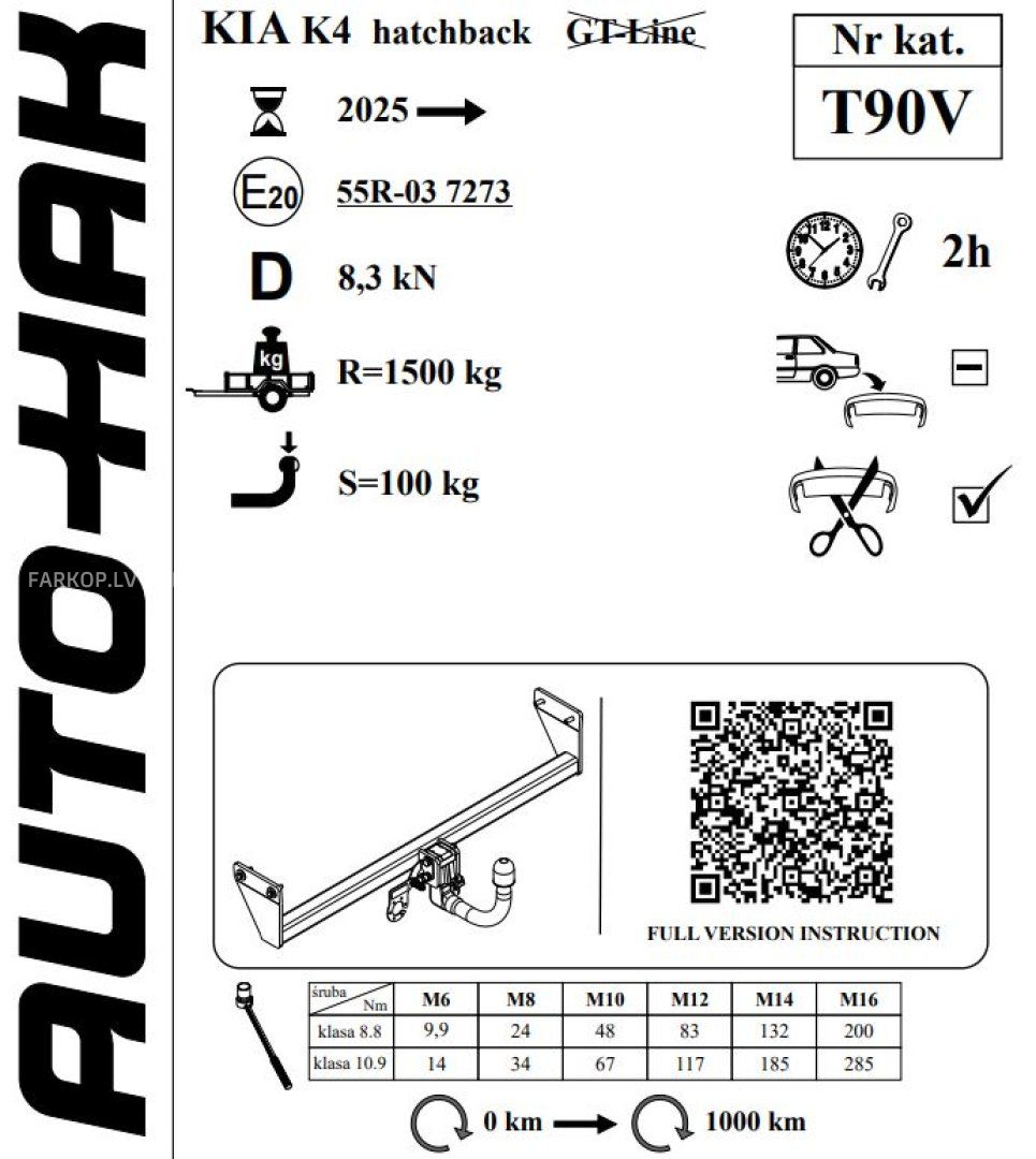SVARĪGI !!! Sakabes āķa komplekts nesatur elektroinstalāciju.