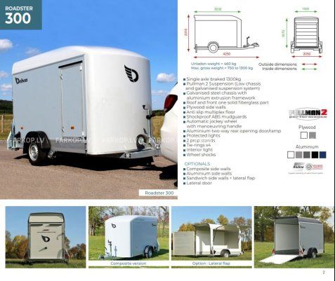 Iepazīstieties ar Cheval Liberte DEBON C5 Roadster 300 furgonu – vienass automašīnas piekabi ar Pullman 2 bremzēm un piekari drošai un ērtai braukšanai. Ar pilnu masu 1300 kg šis furgons ir ideāli piemērots gan īsiem braucieniem, gan tālsatiksmes braucieniem.