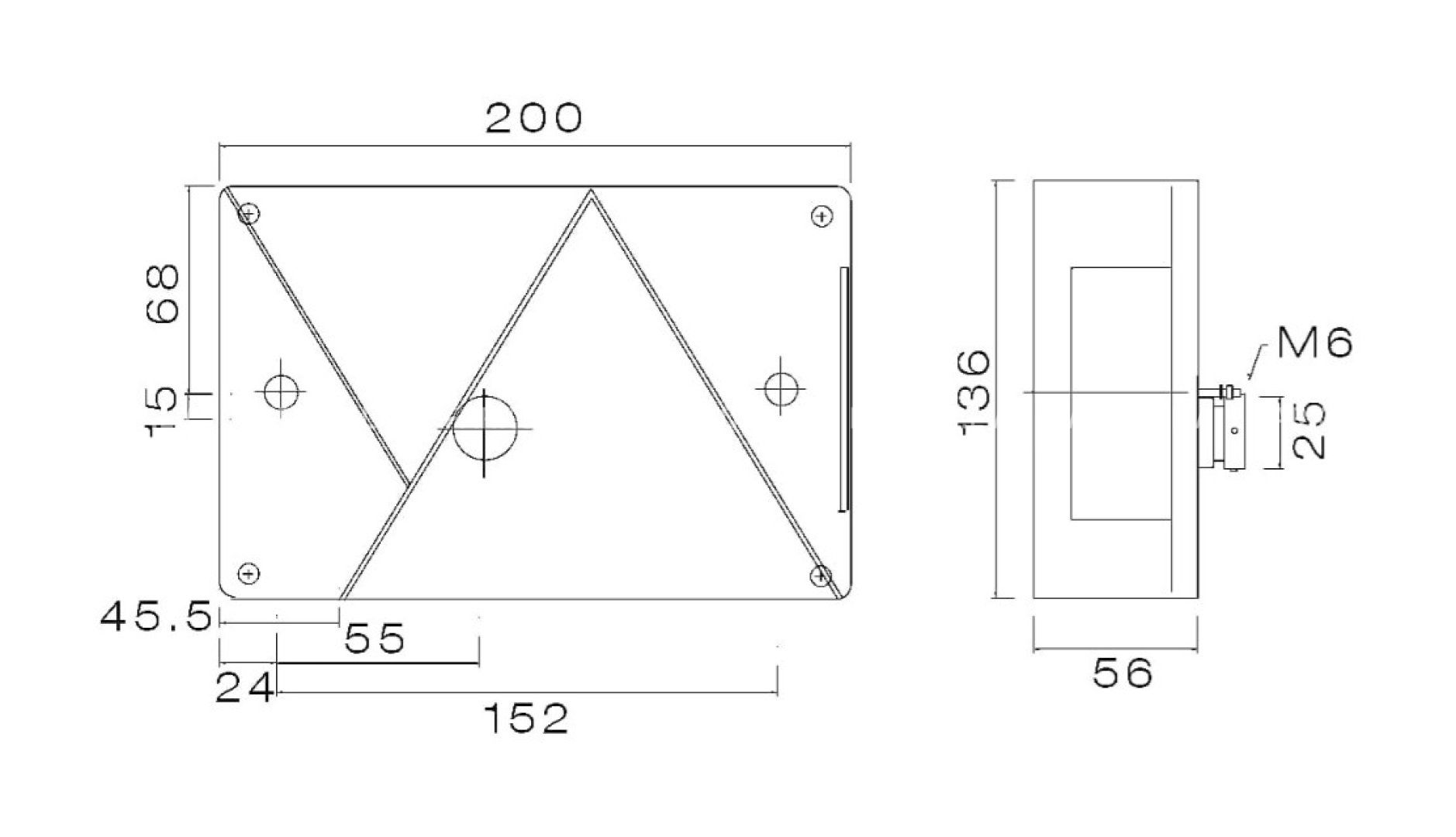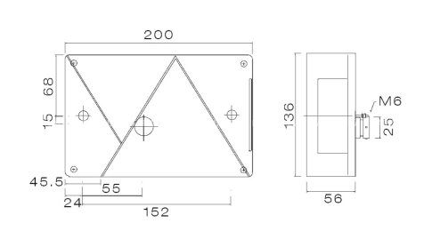 ASPÖCK Multipoint IV aizmugurējais lukturis, 6 funkcijas, labā puse.