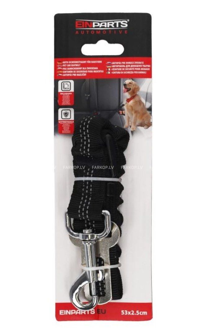 Suņu drošības pavada lietošanai automašīnās. Tā ļauj droši piesprādzēt mājdzīvnieku braukšanas laikā, ierobežojot tā kustības un palielinot visu pasažieru drošību. Josta ir piemērota lielākajai daļai standarta automašīnu drošības jostu ligzdu.