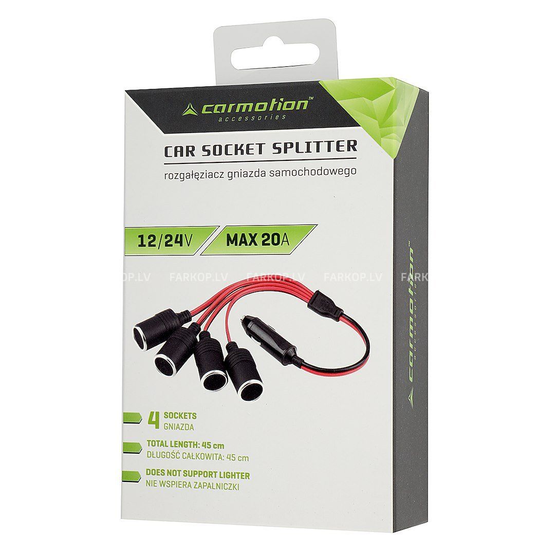 4 ligzdu 12/24 V cigarešu šķiltavas sadalītājs. Profesionāls adapteris, kas izveido papildu barošanas avotu no jūsu automašīnas cigarešu šķiltavas.