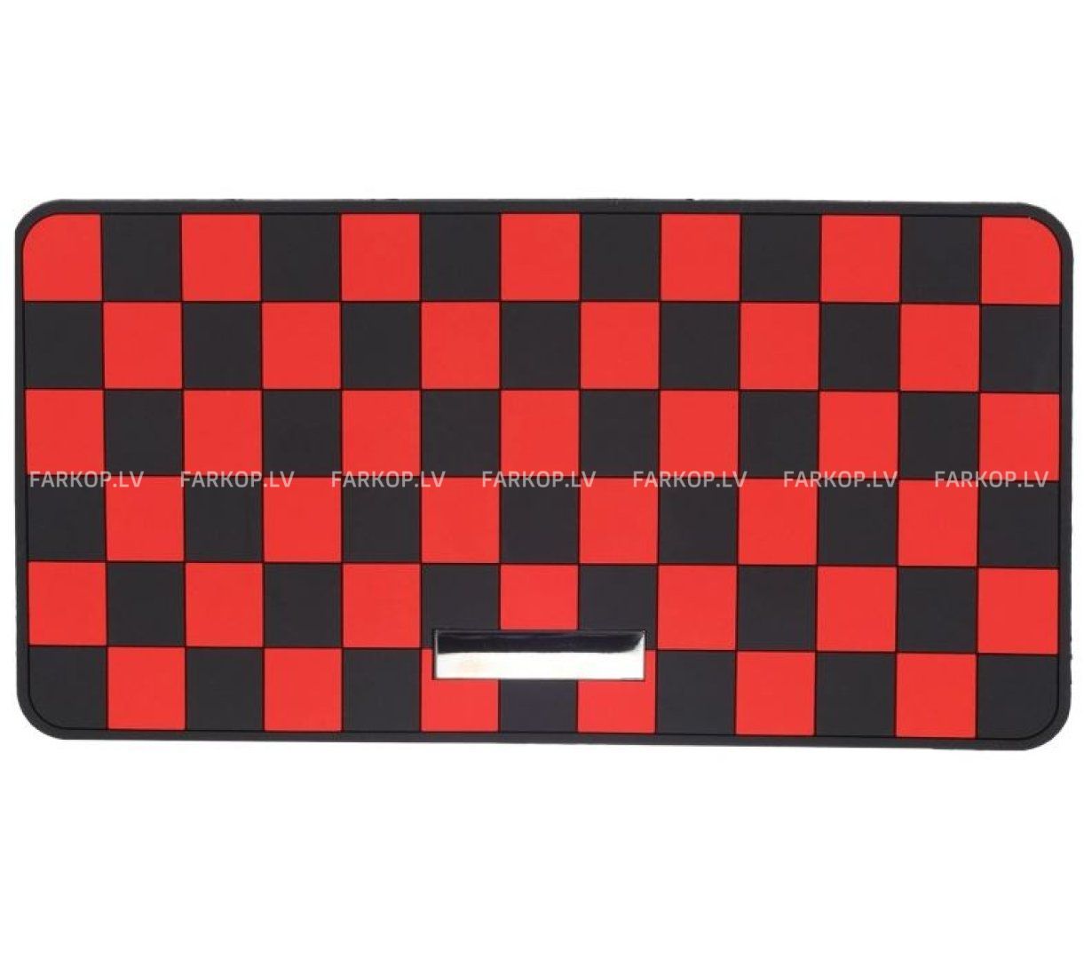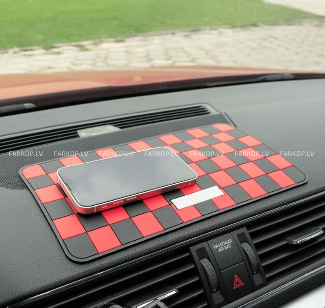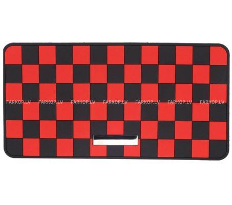 Virsmai ir klasisks rūtainā laukuma raksts melnā un sarkanā krāsā, kas ne tikai izskatās iespaidīgi, bet arī efektīvi novērš priekšmetu slīdēšanu braukšanas laikā. Paklājiņam nav nepieciešama līme vai papildu uzstādīšana – vienkārši novietojiet to uz tīras paneļa virsmas.