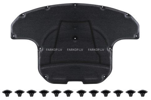 Motora pārsega skaņas izolācija ar stiprinājumu komplektu.