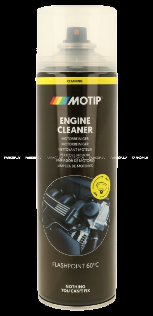 Очистите двигатели транспортных средств и механизмов с помощью очистителя двигателя MOTIP. Очиститель обладает высокими растворяющими свойствами, не оставляет следов. Он также не проводит электрический ток и не вызывает коррозии.