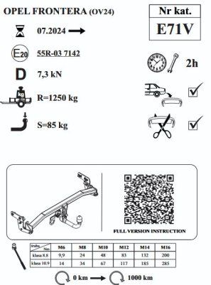 ВАЖНО !!! Комплект фаркопа не содержит электроинсталляцию.