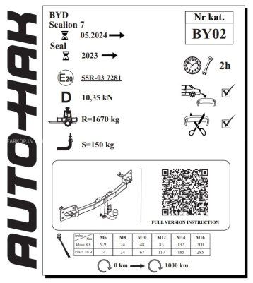 Aвтомобильный фаркоп, с прикручиваемым крюком. Конструкция фаркопа разработана и соответствует стандартам авто производителя и Евро стандартам. Устанавливается на предусмотренные заводом, крепёжные места. В комплектации фаркопа имеются всё необходимые элементы для его установки на автомобиль.