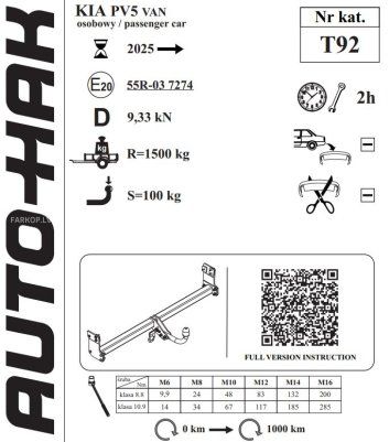 Aвтомобильный фаркоп, с прикручиваемым крюком. Конструкция фаркопа разработана и соответствует стандартам авто производителя и Евро стандартам. Устанавливается на предусмотренные заводом, крепёжные места. В комплектации фаркопа имеются всё необходимые элементы для его установки на автомобиль.