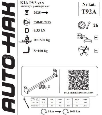 ВАЖНО !!! Комплект фаркопа не содержит электроинсталляцию.