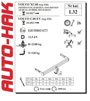 Aвтомобильный фаркоп, с прикручиваемым крюком. Конструкция фаркопа разработана и соответствует стандартам авто производителя и Евро стандартам. Устанавливается на предусмотренные заводом, крепёжные места. В комплектации фаркопа имеются всё необходимые элементы для его установки на автомобиль.