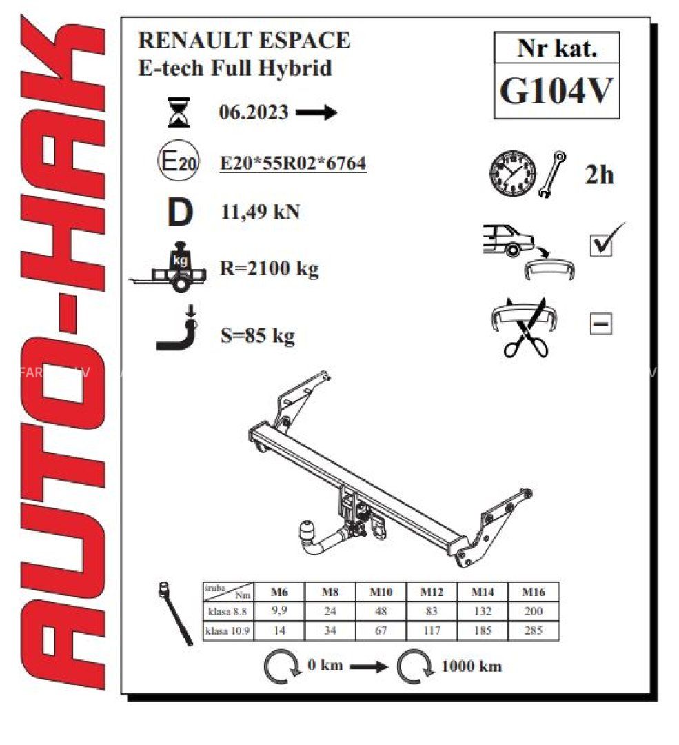 F. Когда крюк не используется, его следует хранить в безопасном, чистом и сухом месте. Если он хранится в автомобиле, он должен быть закреплен таким образом, чтобы он не мог свободно перемещаться. Свободно лежащий крюк, может быть угрозой в случае внезапного торможения или совершения каких либо резких манёвров.