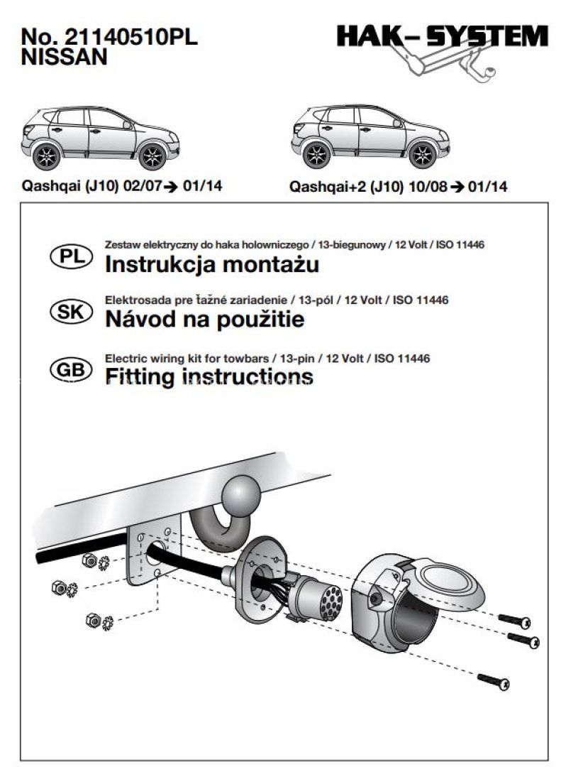 Оригинальный комплект электроинсталяции для фаркопа, с 13 контактной розеткой.
