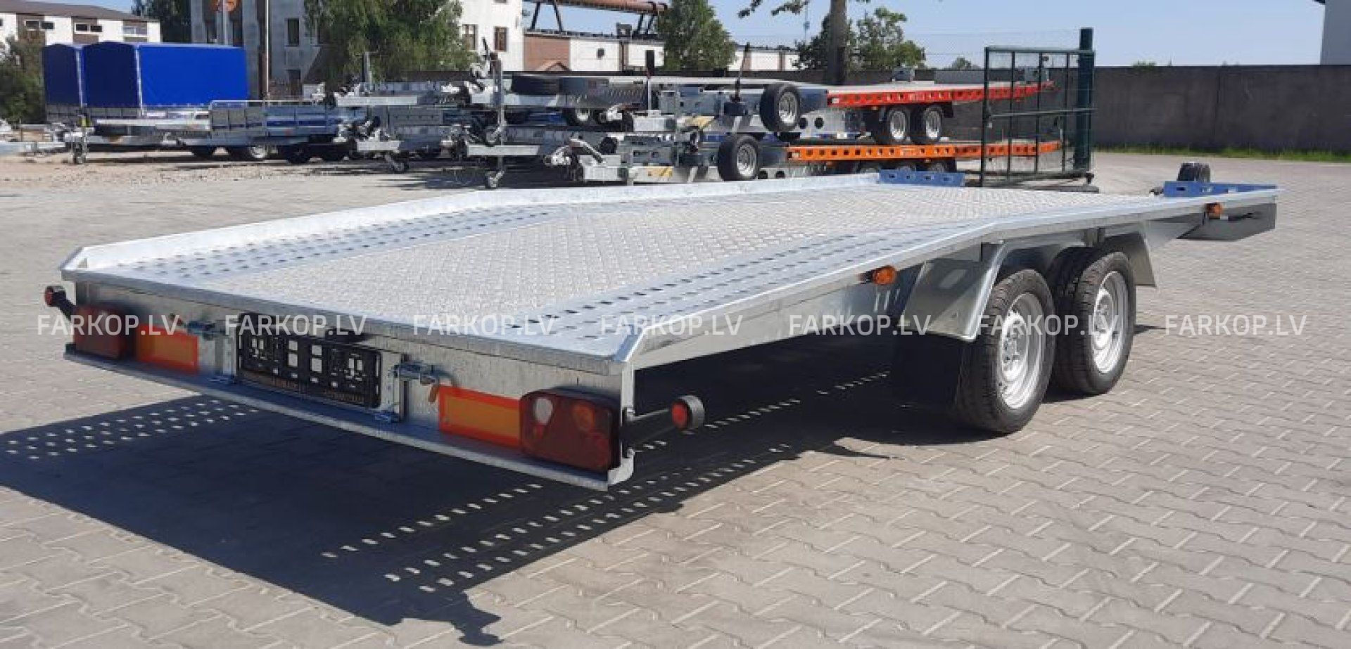 Besttrailer – двухосный прицеп. Очень прочная конструкция, идеально подходит для перевозки автомобилей. Дышло (шарнир) изготовлено из листового, горячеоцинкованного металла. Внутренняя часть покрыта гофрированными алюминиевыми листами. Рама согнута из листового металла, горячеоцинкованного.