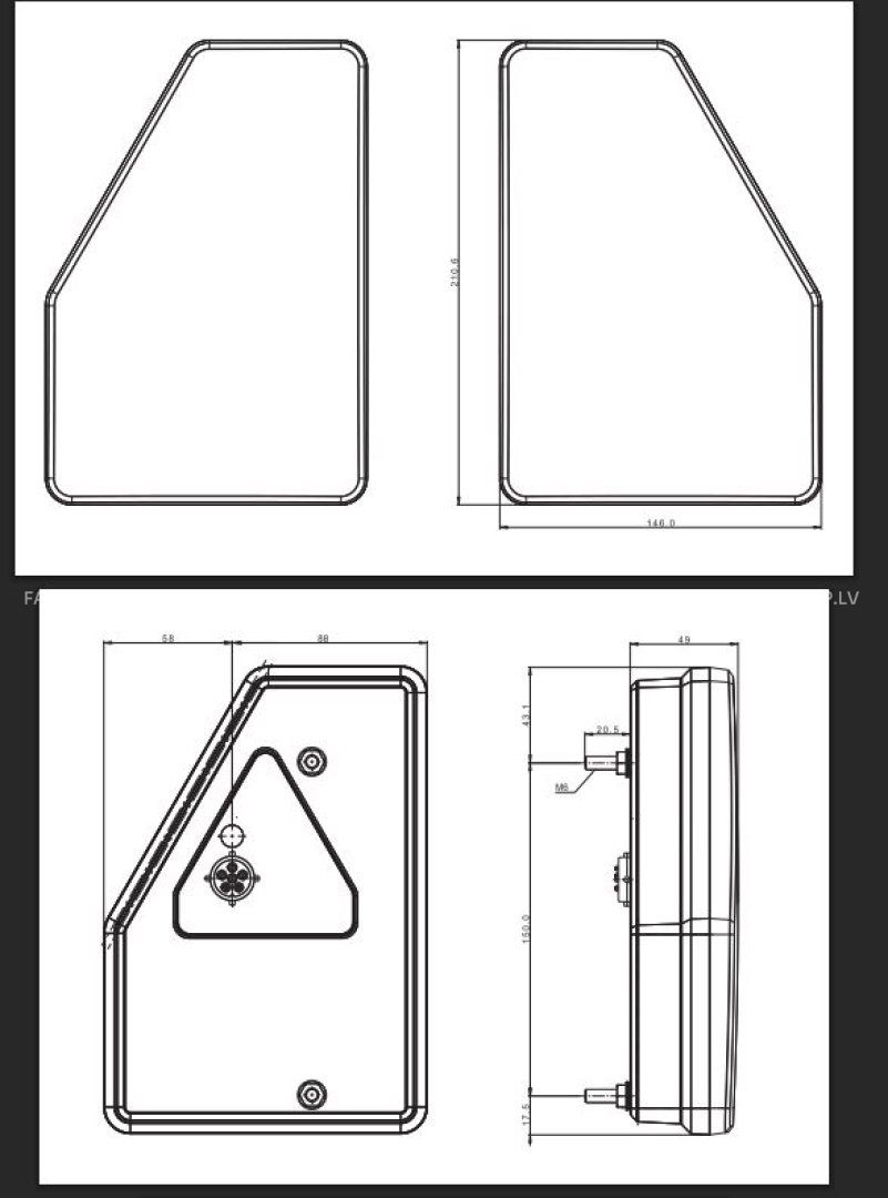 Фонарь задний правый, универсальный, LED 12В с треугольным светоотражателем, 5-функциональный- СТОП/ ГАБАРИТ/ УКАЗАТЕЛЬ ПОВОРОТА/ СВЕТ ЗАДНЕГО ХОДА, без освещения номерного знакa.