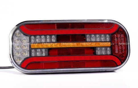 Фонарь задний универсальный LED 12-30В, левый, 6-функциональный, СТОП / ГАБАРИТ / УКАЗАТЕЛЬ ПОВОРОТА / ЗАДНИЙ ХОД / СВЕТ ПРОТИВОТУМАННЫЙ без освещения номерного знака с проводом дл. 1 м.