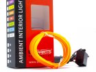 LED salona apgaismojums Darba spriegums 9V - 16V. Garums 2000 (200 cm). Krāsa dzintara. Uzstādīšanas grūtības līmenis: Vienkāršs. Ambient LED Light optiskās šķiedras ir izgatavotas no augstākās kvalitātes materiāliem, izmantojot jaunākās tehnoloģijas, Pateicoties tam, enerģijas patēriņš ir ļoti zems, un gaisma ir vienmērīga visā optiskās šķiedras garumā. Pateicoties mazajiem izmēriem (tikai 2 mm biezumā biezākajā vietā un 0,61 mm plānākajā vietā) un lieliskajai elastībai, Ambient LED optisko šķiedru gaismu var uzstādīt jebkurās spraugās instrumentu panelī, automašīnas durvīs, zem sēdekļiem, un to ierobežo tikai jūsu iztēle. LED izstaro gaismas staru kūli, kas vienmērīgi izplatās pa visu optisko šķiedru, radot acīm tīkamu, maigu un neapžilbinošu apgaismojumu. Katrs komplekts ir aprīkots ar invertoru/kontrolieri (sprieguma pārveidotāju), pateicoties kuram ierīce patērē vēl mazāku strāvu, tā jāpievieno 12 V barošanas avotam. Kontrolieris ir mazs un viegli noslēpjams. Nodrošina efektīvu, nepārtrauktu un bezkļūmju darbību ilgu laiku. Tehniskie parametri: Garums: 2 m (citi garumi pieejami mūsu piedāvājumos), optisko šķiedru var nogriezt jebkur. Krāsa: balta (citas krāsas pieejamas mūsu piedāvājumos). Stara leņķis: 360°. Enerģijas patēriņš: 0,3 W/1 M. Komplektā iekļauts: Balta optiskā šķiedra, 2 metrus gara. Kontrolieris/invertors. Šķiedru optiku var izmantot ne tikai kā automašīnas apgaismojumu, bet arī kā mājas interjera dekorāciju, kāzu dekorāciju, Helovīna kostīmu dekorāciju, rotaļlietu dekorāciju, Ziemassvētku rotājumu un daudz ko citu.